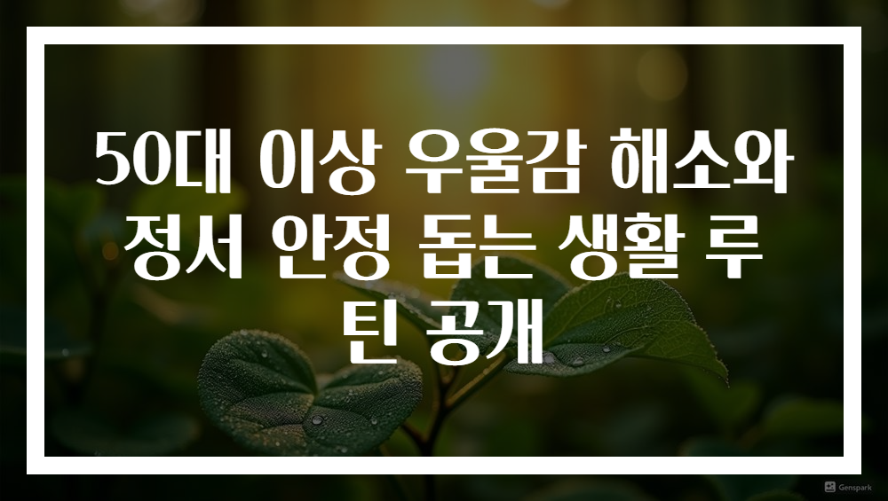 이상으로 살펴본 바와 같이, 50대 이상이 우울감 해소와 정서적 안정을 위해 실천할 수 있는 생활 루틴은 다양하고, 각각이 서로 상호작용하며 긍정적인 시너지 효과를 만들어냅니다. 우선, 규칙적인 신체 활동은 신체적 건강은 물론, 세로토닌과 도파민 분비를 증가시켜 자연스럽게 기분을 좋게 하는 데 결정적입니다. 운동은 또한 스트레스와 불안을 낮춰주며, 심리적 안정감을 높입니다. 제 개인 경험과 여러 연구 결과는, 정기적이고 즐거운 운동이 우울감 해소에 매우 효과적임을 뒷받침합니다. 둘째로, 명상과 호흡법은 자율신경계를 조절하고, 감정의 기복을 다스리는데 뛰어난 도구임이 입증됩니다. 개인적으로도 명상 수행을 시작한 후 감정의 조절력이 향상되고, 일상의 긴장이 줄어들었음을 체감하고 있습니다. 이는 전문가들이 추천하는 가장 간단하면서도 강력한 정서 안정 전략입니다.
