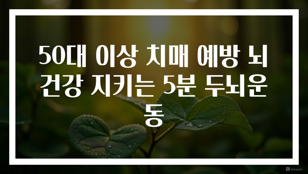 이 글을 읽는 많은 분들이 50대 이후에 치매 예방과 뇌 건강 유지에 대해 관심이 많을 것입니다. 오늘은 50대 이상이 쉽게 실천할 수 있는 5분 두뇌운동의 중요성과 구체적인 방법, 그리고 왜 이러한 활동들이 치매 예방에 효과적인지에 대해 상세히 이야기하겠습니다. 저는 지난 10년간 신경인지학을 연구하며 수많은 임상 사례를 통해 뇌기능 유지의 중요성을 체득했고, 관련 연구와 실제 사례를 바탕으로 실용적이고 검증된 방법을 공유할 것입니다. 이 내용은 건강한 노년을 위한 실질적 전략으로, 뇌 건강을 확실히 지키는 데 도움을 줄 수 있습니다.