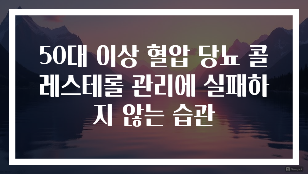 50대 이상 건강 관리는 삶의 질을 높이고 장기적인 건강 문제를 예방하는 데 필수적입니다. 특히 혈압, 당뇨, 콜레스테롤은 만성질환의 핵심 원인으로 자리 잡고 있으며, 적절한 관리 없이는 심혈관 질환, 뇌졸중, 신장 질환 등 치명적인 질병으로 발전할 수 있습니다. 이 시기부터 꾸준한 생활습관의 변화와 올바른 습관을 통해 병의 진행을 막거나 지연시키는 것이 매우 중요합니다. 본 글에서는 실질적 경험과 과학적 근거를 바탕으로 50대 이상이 실패하지 않는 혈압, 당뇨, 콜레스테롤 관리 습관에 대해 상세히 살펴보고자 합니다.